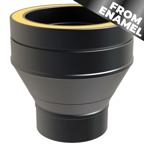 TO BE USED ADAPTING FROM ENAMEL ONLY. This has a tapered design to allow a smooth transition from single wall to twin wall. Increases by a 25mm.